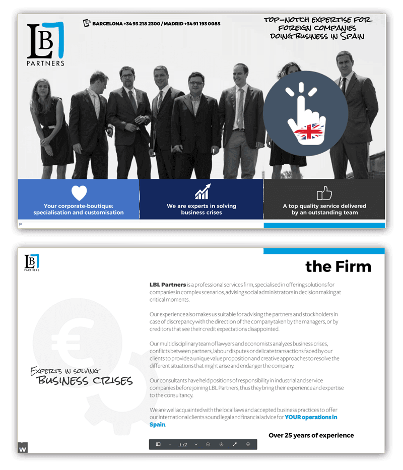 Actualitzar la imatge corporativa d’aquesta firma, ajudant a centrar-se en serveis clau, creant una gamma completa d’eines: un lloc web multilingüe, presentacions en PowerPoint i fulletons de serveis